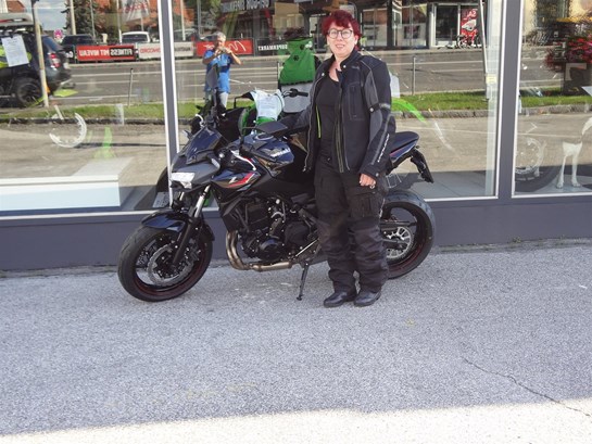 Barbara hat sich einen lang ersehnten Traum erfüllt. Zur Überraschung ihrer Familie hat sie den Motorradführerschein gemacht und mit einer neuen Kawasaki Z 650 zu Hause vorgefahren! Wir wünschen mit den neuen Bike viel Spaß und viele tolle Ausfahrten!