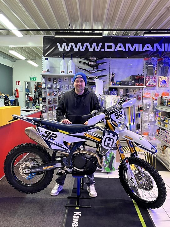 Es freut uns , dass wir an unseren Teamfahrer und langjährigen Kunden Sebastian eine neue Husqvarna FE 350 der Modellreihe 2026 übergeben dürfen! Sebastian hat bei der Konfiguration seines Bikes nichts ausgelassen!! Beginnend mit einem neuen Öhlins Fahrwerk über eine Akrapovic Auspuffanlage, Bremsscheibenschutz vorne und hinten, Schwingenschutz, AXP Motorschutz und einen sehr persönlich gestalteten Dekor. Für die Umsetzung des Dekorwunsches möchten wir uns bei der Fa. Grafixdesign bedanken - wie immer TOP !!
